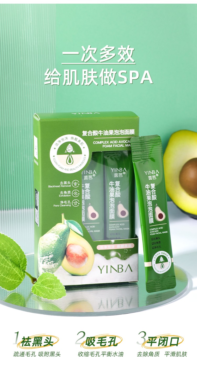 YINBA茵芭復(fù)合酸牛油果泡泡面膜